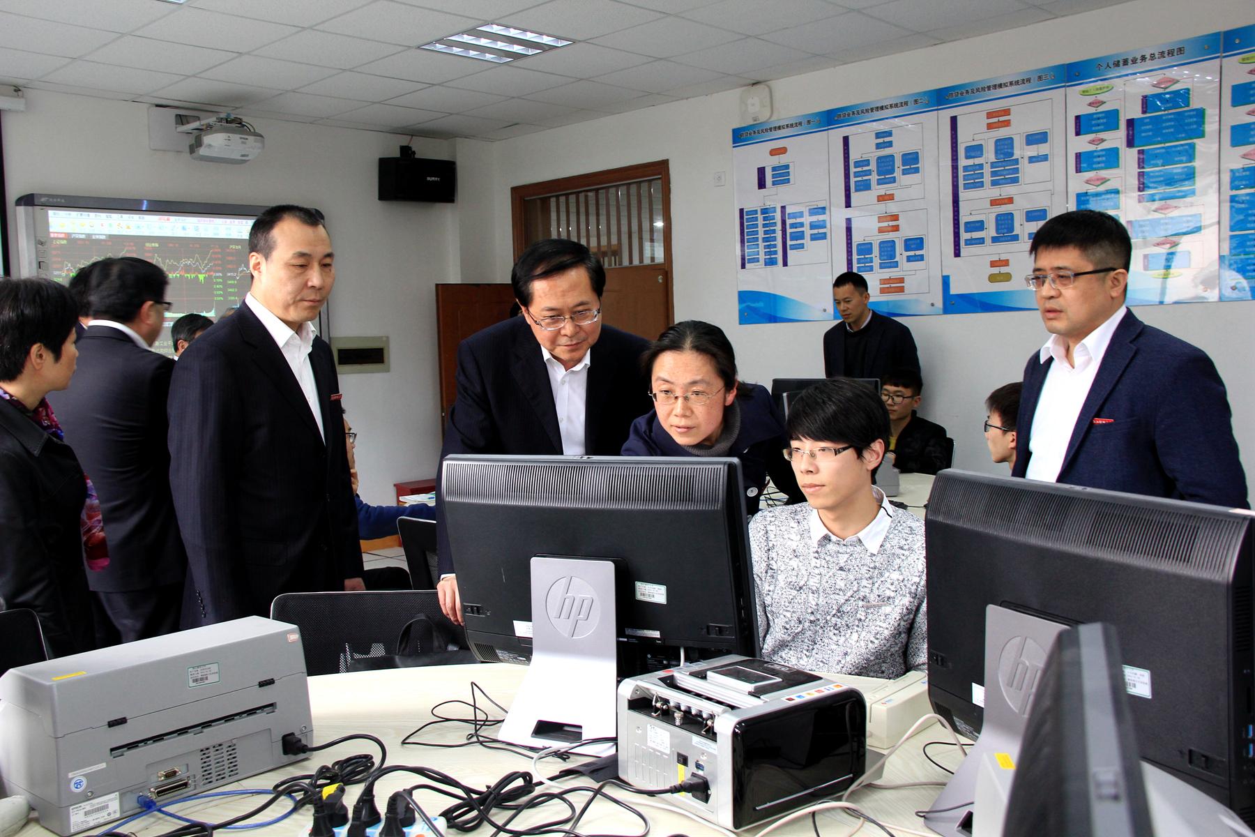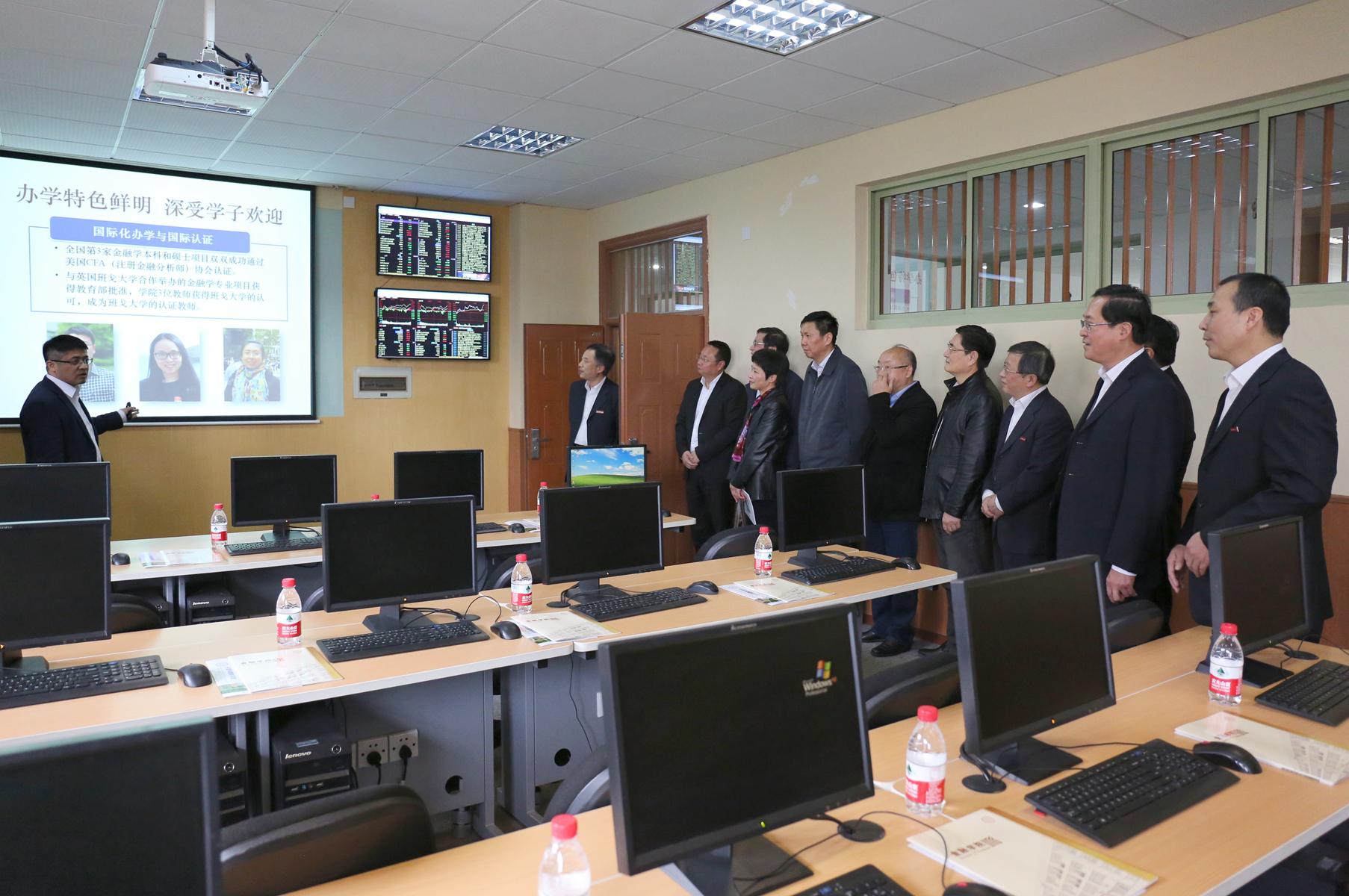 在参观金融工程与金融风险实验室、模拟银行实训基地时,车俊省长与师生亲切交谈,并对台湾av