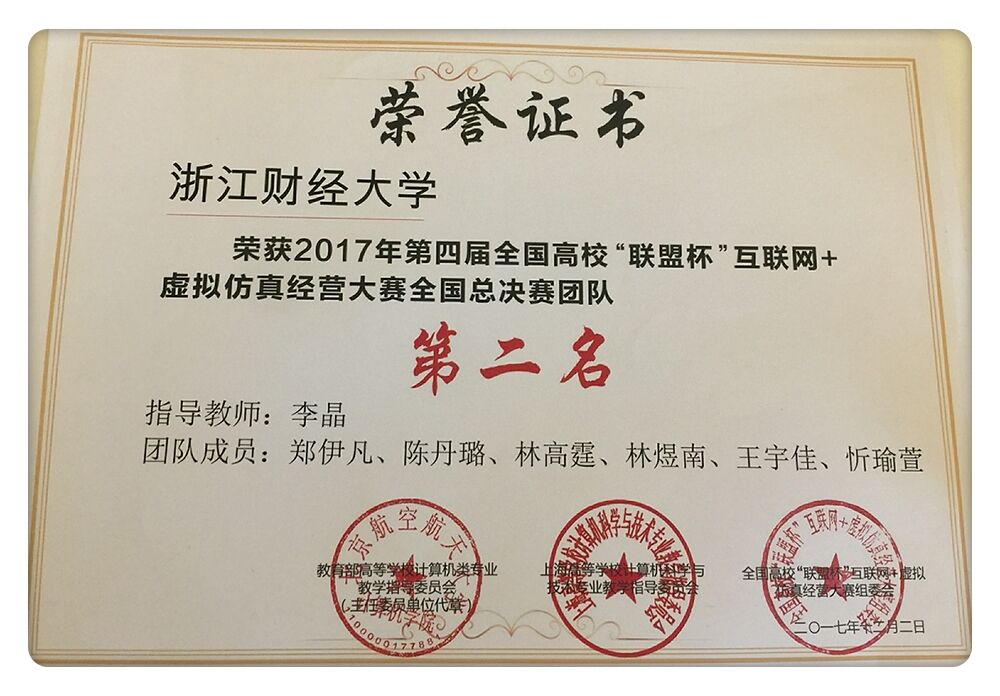 15金融1班忻瑜萱 、16金融2班王宇佳、16金融2班林高霆 、16金融工程2班陈丹璐 、16信用管理班郑伊凡及会计台湾av林煜南同学组成的代表队荣获团体二等奖。