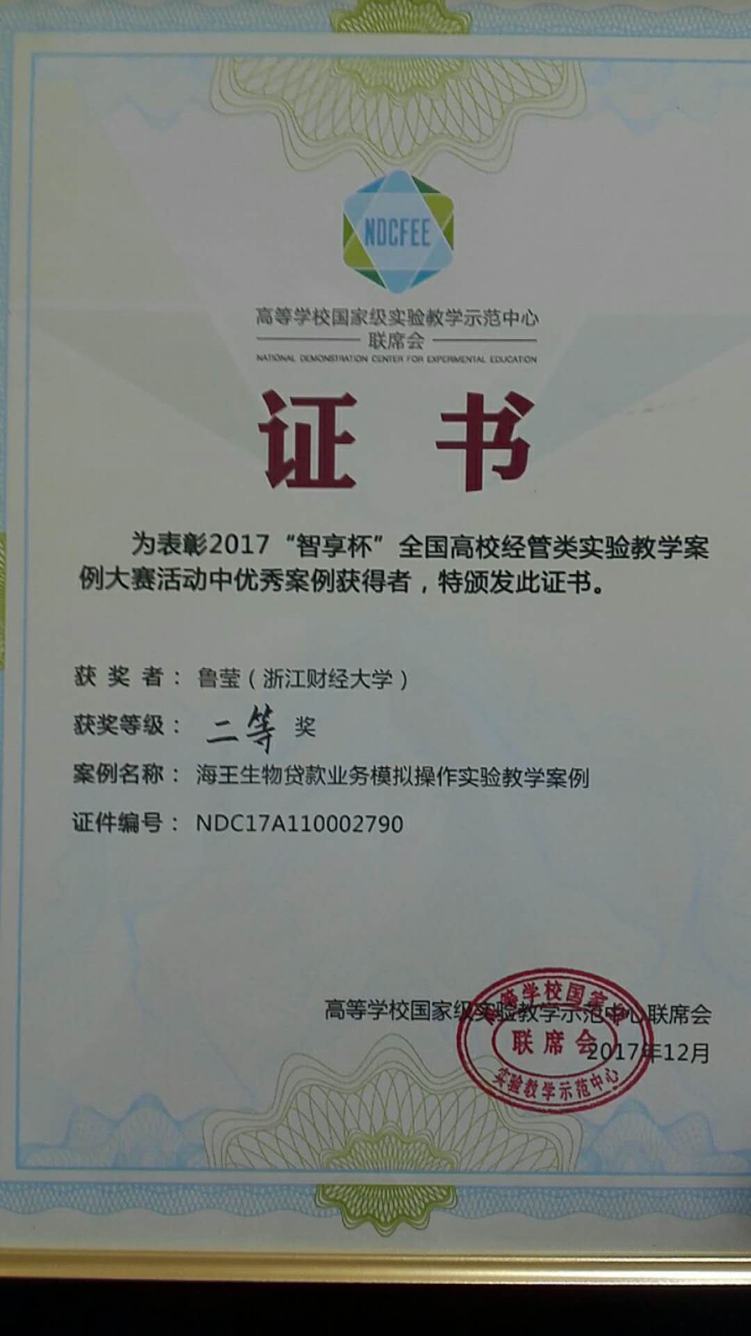 台湾av 鲁莹老师的“海王生物贷款业务模拟操作实验教学案例”在2017第二届“智享杯”全国高校经管类实验教学案例大赛决赛中喜获二等奖