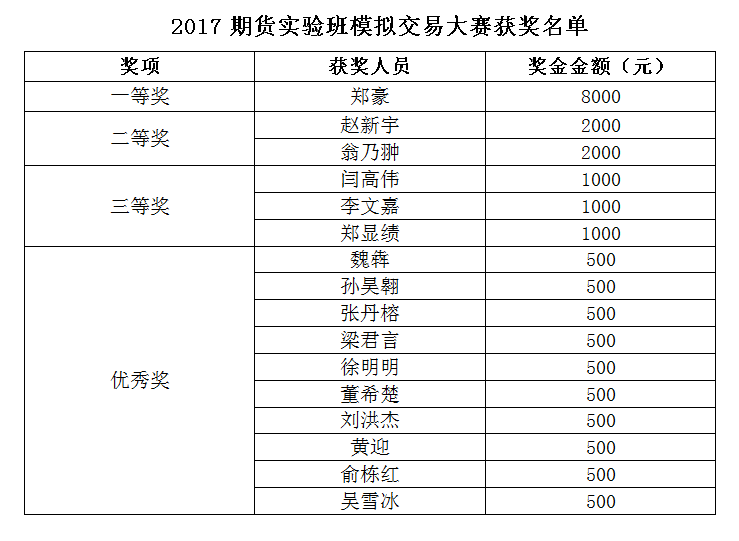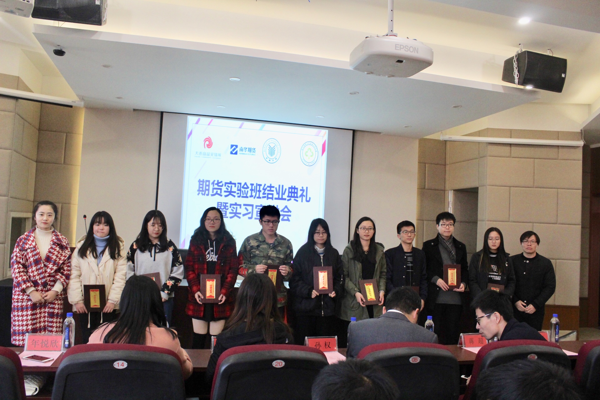 副院长王聪聪上台致辞,总结了此次活动,并分享了今后的展望。南华期货人力资源总监孙权先生致辞,表达了对实验班学员的高度赞扬及鼓励。随后,南华期货代表为优秀学员颁奖:郑豪同学获一等奖,奖金八千元;赵新宇等两名同学获二等奖,奖金两千元;闫高伟等三名同学获三等奖,奖金一千元;另有10名同学获得优秀奖,奖金五百元。
