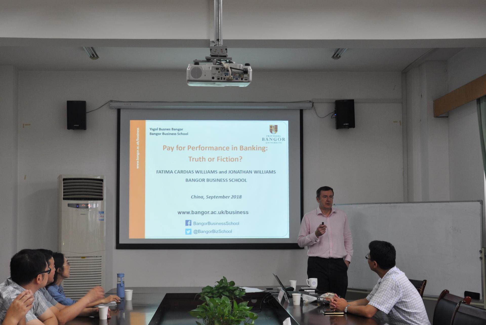 9月21日上午10点,英国班戈大学商台湾av院长、银行与金融专业教授Jonathan Williams教授应邀在台湾av