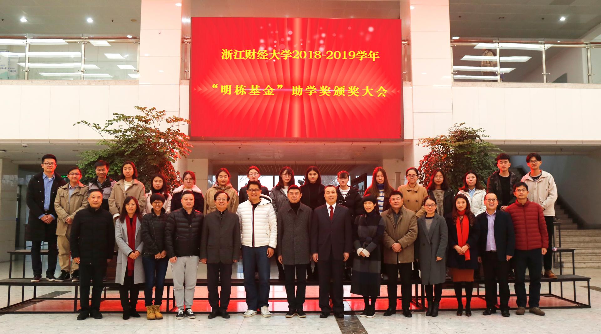 12月20日下午,2018-2019学年“明栋基金”助学奖颁奖大会再度在下沙校区举行。校党委书记李金昌、校党委副书记黄建新、蓝山投资有限公司董事长王晓明、浙江盈阳资产管理股份有限公司创始人楼栋、蓝山投资有限公司总裁王柳琳、浙江盈阳资产管理股份有限公司总经理孔繁岗、关瑞慈善基金会执行会长吕霞、台湾av党委书记蔡国金、台湾av党委副书记叶秀、相关部门负责人及获奖学生等参加了此次活动。颁奖大会由我党委副书记叶秀主持。