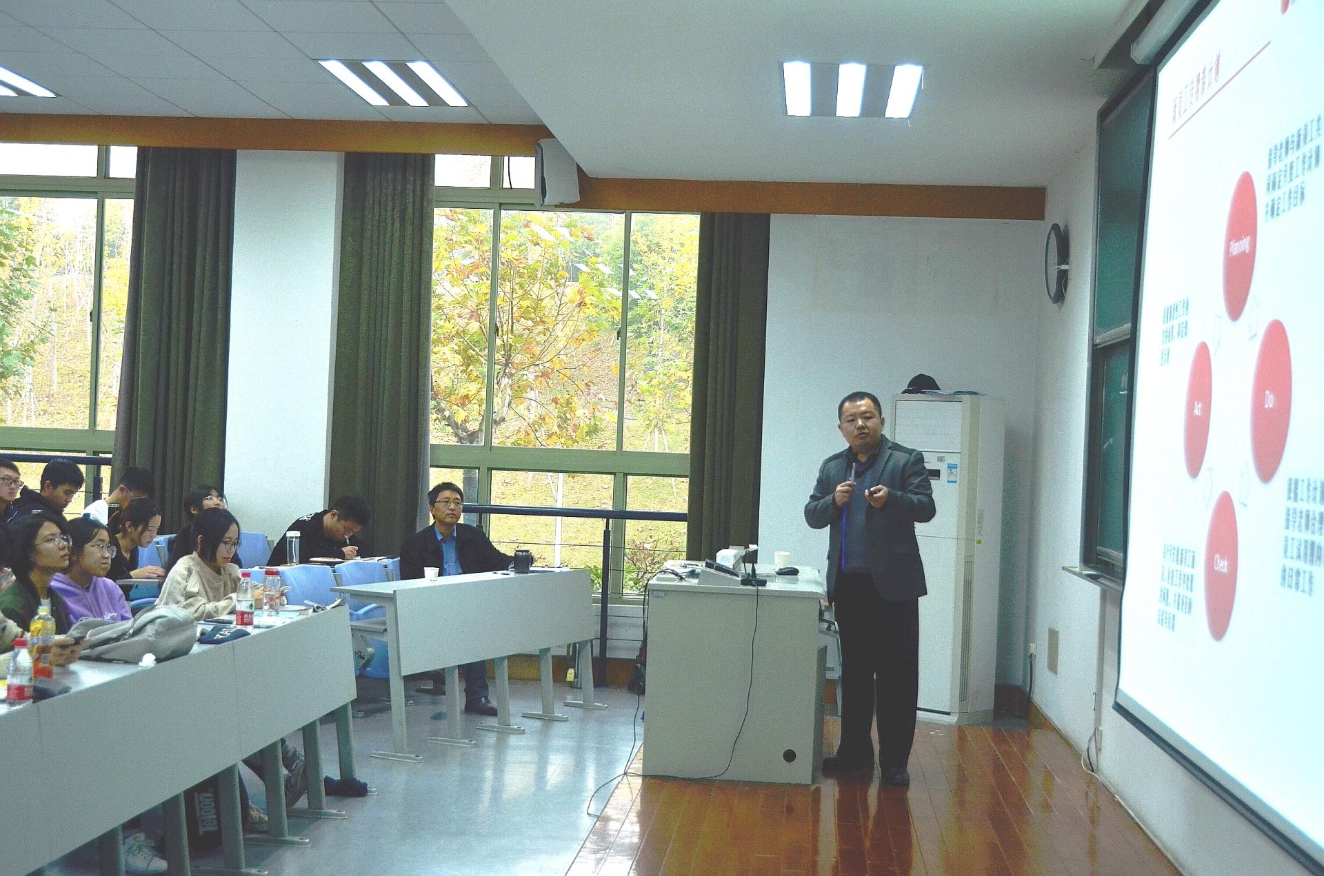 《项目融资》课堂,作为金融工程专业的“基地精英进课堂”活动,给2017级金融工程、金融学、投资学等专业的同学做了题为“如何分析投资标的上市公司的财务状况”和“资本市场及就业前景”的专题讲座,并与同学们进行了互动交流。