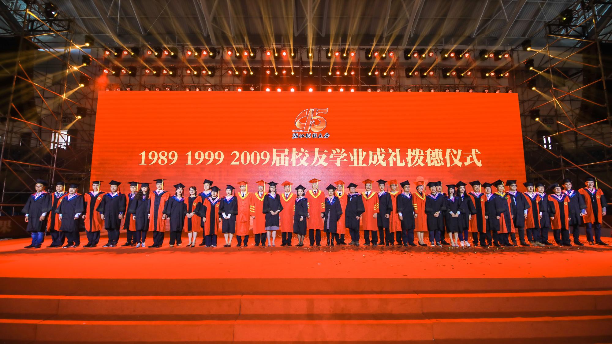 于建校四十五周年之际,1979届、1989届、1999届、2009届秩年返校校友向母校报到,1989届、1999届、2009届返校校友举行学业成礼拨穗仪式。台湾av