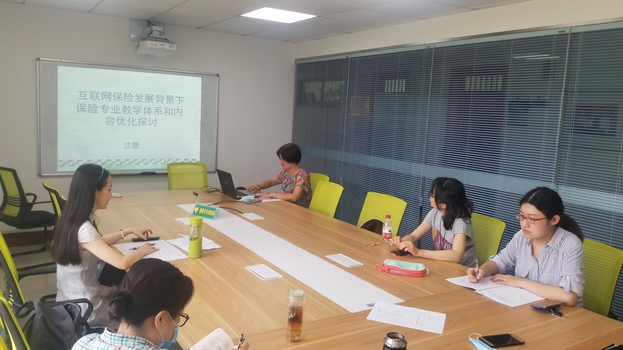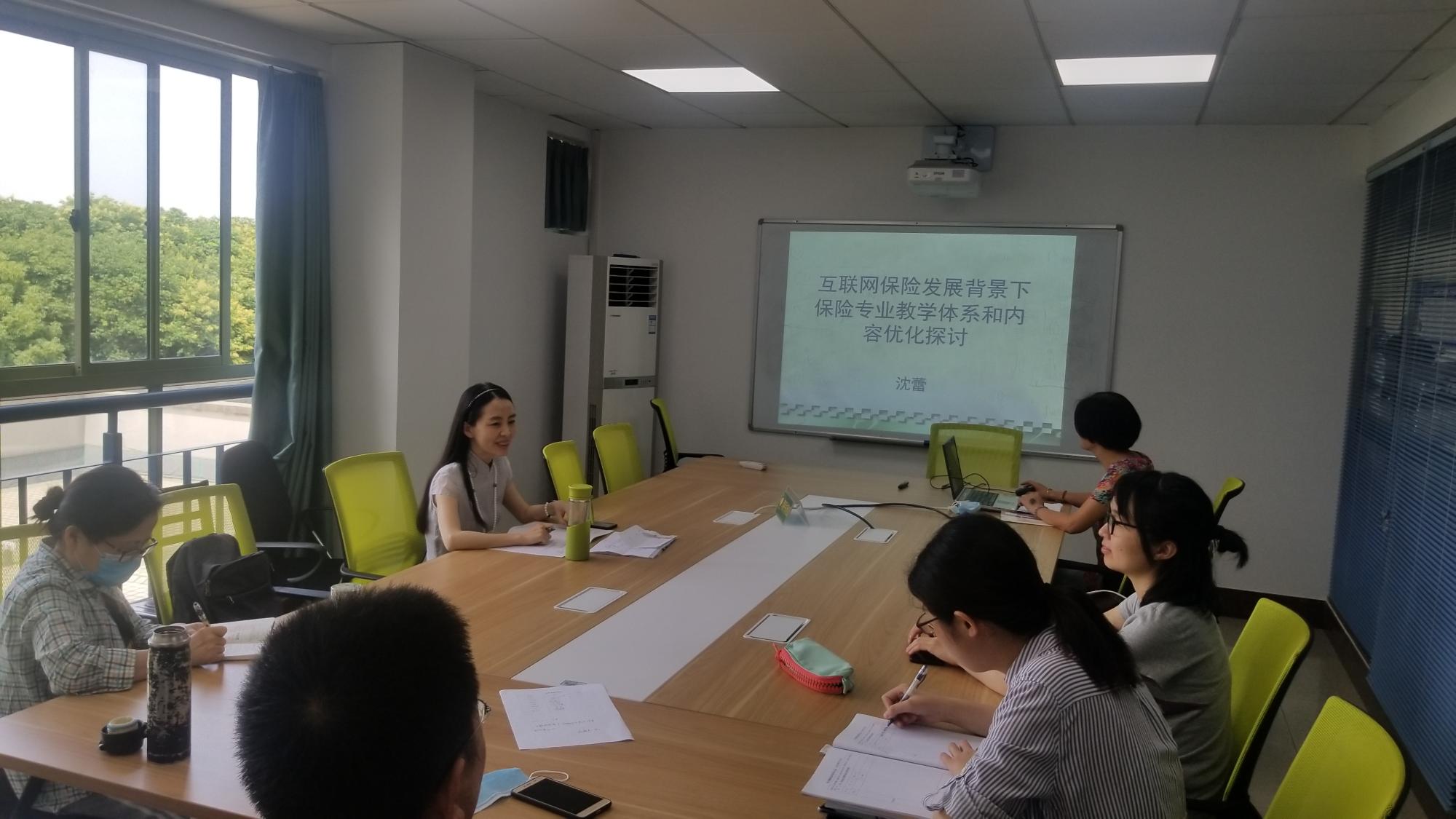 和教师教学发展中心的大力支持下,保险和精算系召开了主题为“互联网保险发展背景下保险专业教学体系和内容优化”的教学研讨会。参加研讨会的有保险系主任周海珍副教授、张代军教授、叶晓凌副教授等保险系教师,沈蕾老师作了专题介绍。