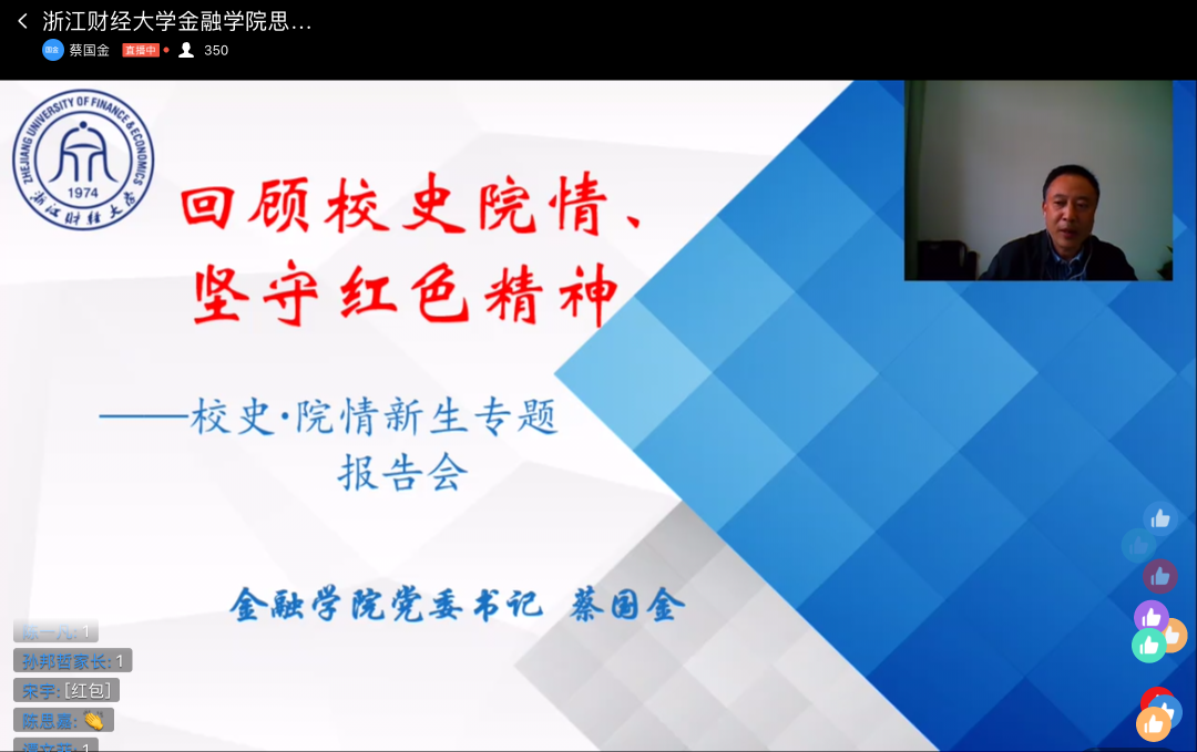 2020级新生思政第一课通过线上形式顺利开展。台湾av党委书记蔡国金出席并作“校情院史”新生专题报告。台湾av管理团队以及全体新生共同参与大会。本次大会由台湾av团委书记王伟伟主持。