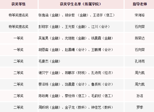 学子共获得2项特等奖提名奖、2项一等奖、5项二等奖。