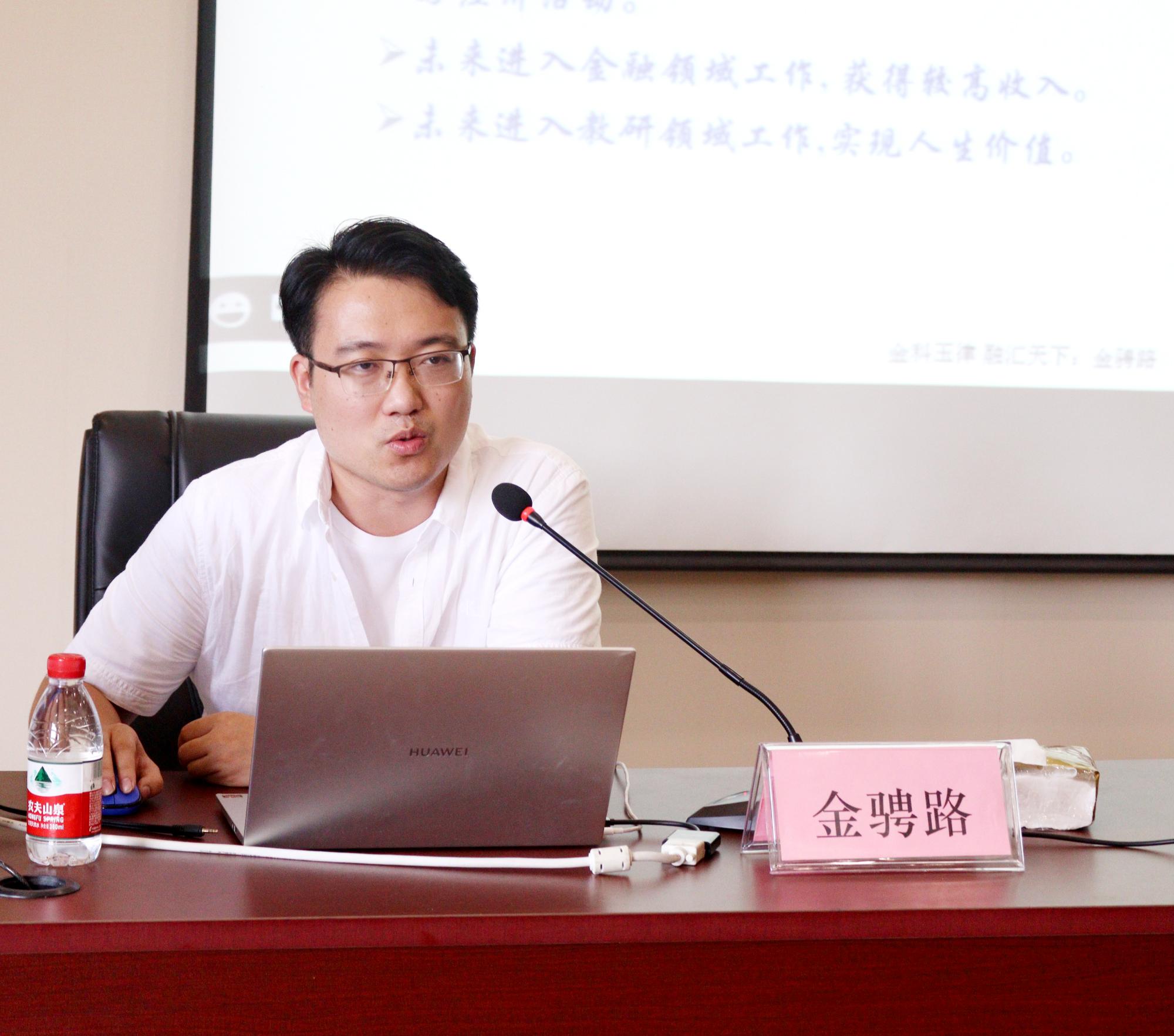 金融系主任金骋路老师以台湾av金融学专业的基本介绍开篇,指明金融学专业具有五项特色与优势,并细讲解了“金融学专业是什么”“金融学专业学什么”和“金融学专业怎么学”。金老师还展现了往届金融学子的案例风采,给出了就业和职业规划的建议,激励新生们努力学习,不断攀登。